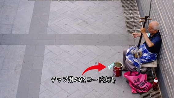 かつては小銭を入れて応援していましたが、今やチップもスマホのQR決済に対応しています。