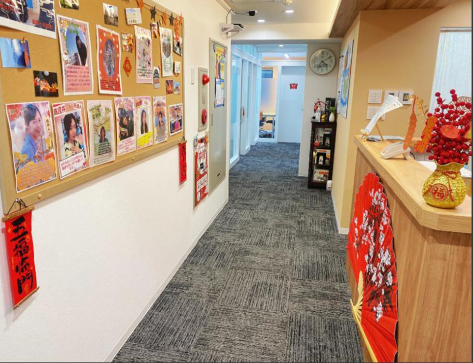 ハオ渋谷校の広いロビーは実践スペース!レッスンまでの待ち時間は先生との会話練習や自習ができる!
