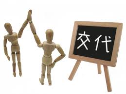 「交代で仕事をする」、「政権交代」のように、