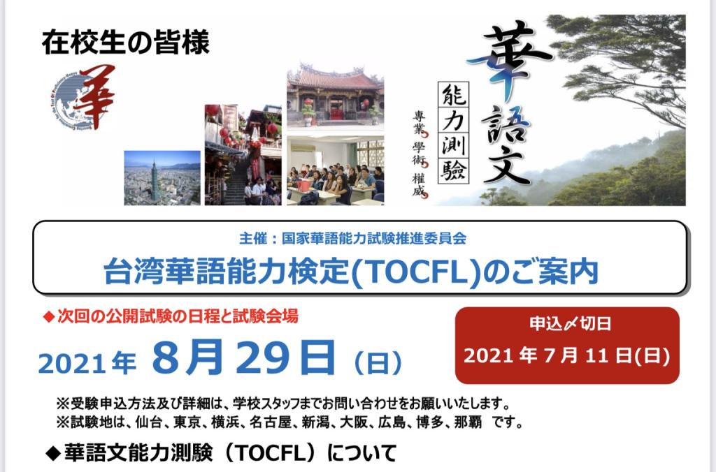 台湾留学に必須の試験はこのTOCFL(台湾華語能力検定)になります。