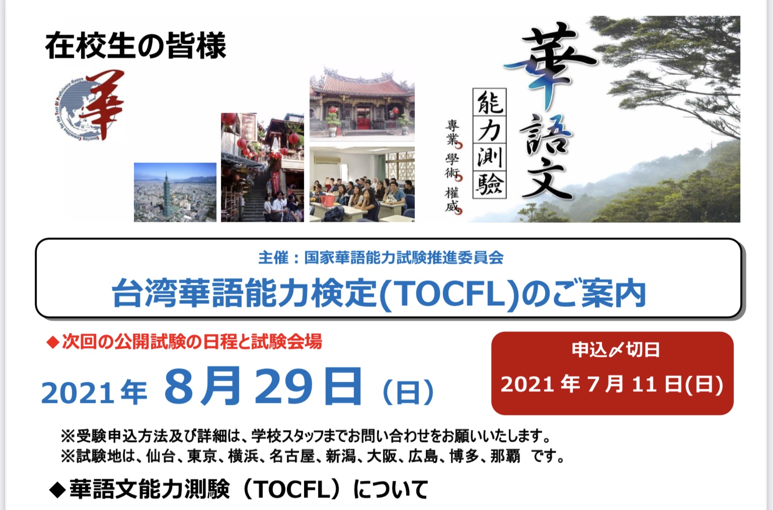 近年、台湾旅行のほかに台湾への留学も注目されています。