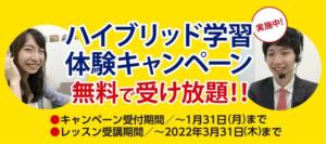 1/31(月)までにお申し込みいただいた方にはなんと「無料で」「何回でも」(※)オンライン学習(レベル別zoomグループレッスンならびに各種セミナー)を体験できるお得なキャンペーンを実施中です。