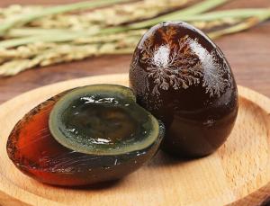 よく前菜に出されますが、粥料理やお菓子などにも用いられます。高級なものは「松花蛋」(ソンホアダン)と呼ばれます。