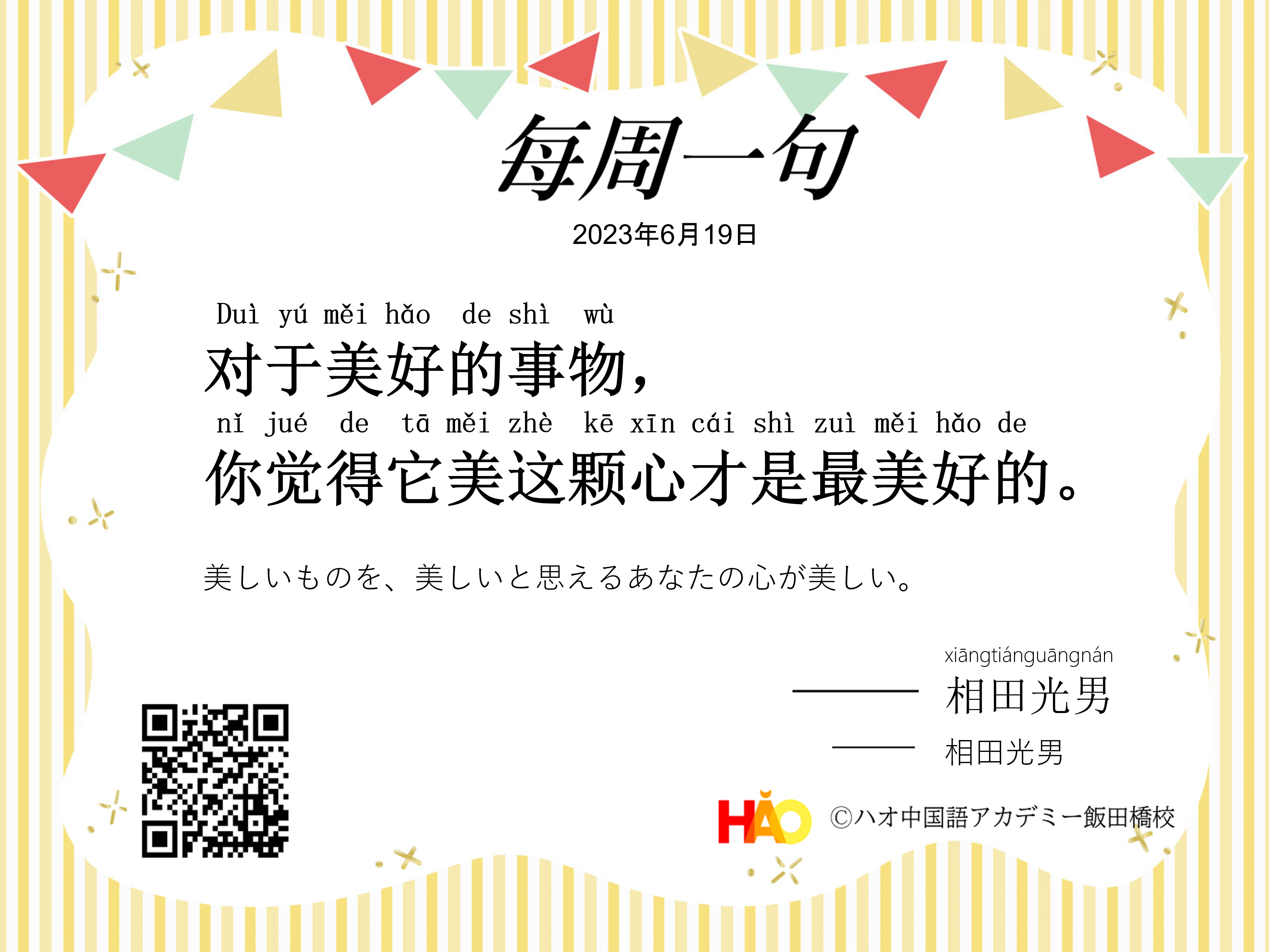 今中国語を挑戦している皆さんも、自由に空を飛ぶ小鳥になるように!