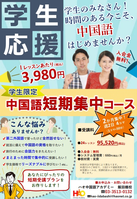 大家好!ハオ中国語アカデミー飯田橋校です。