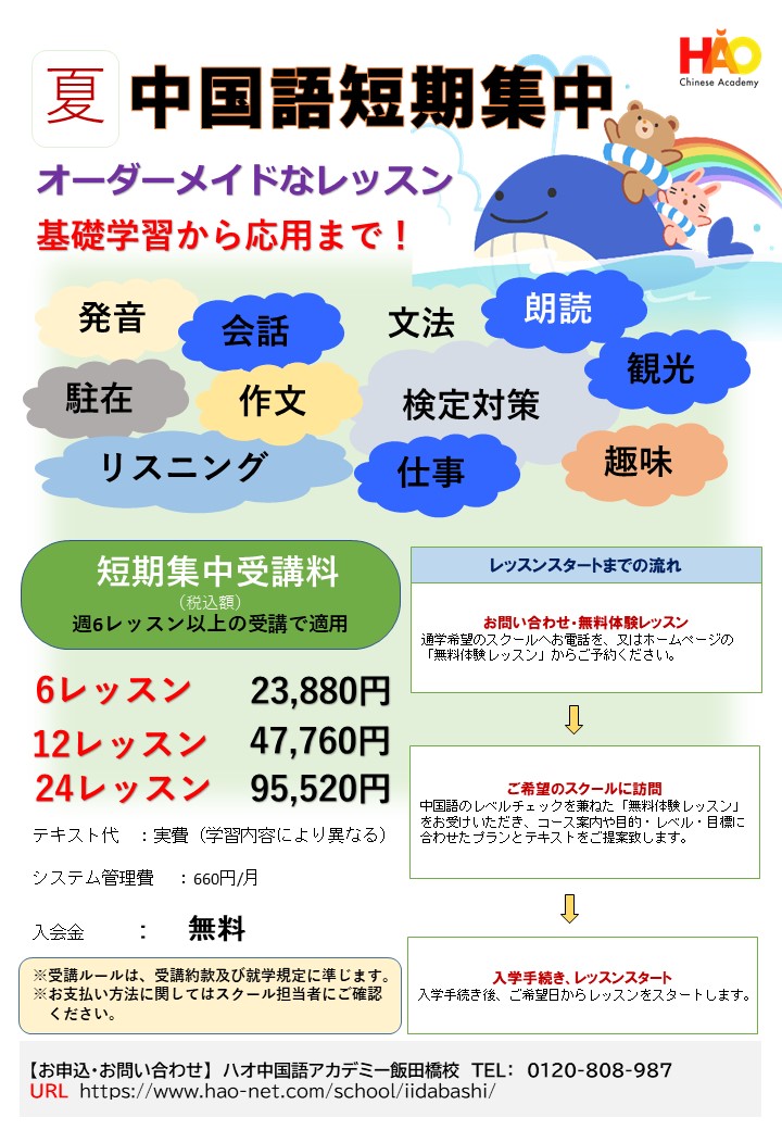 もうすぐ皆さんの夏休みが始まりますね。皆さんの夏休みのため、ハオ中国語アカデミーは豊富うなプログラムをご用意させて頂きました。