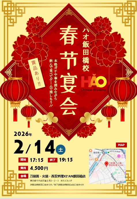 まだまだ寒い日が続きますが、皆様いかがお過ごしでしょうか?さて、間もなく中国で最も大切な伝統祝日である【春節(旧正月)】がやってきます。去年に続き、今年も生徒の皆様と一緒に楽しく祝いたい!そんな想いから、春節をテーマにした交流会を開催することにしました。
