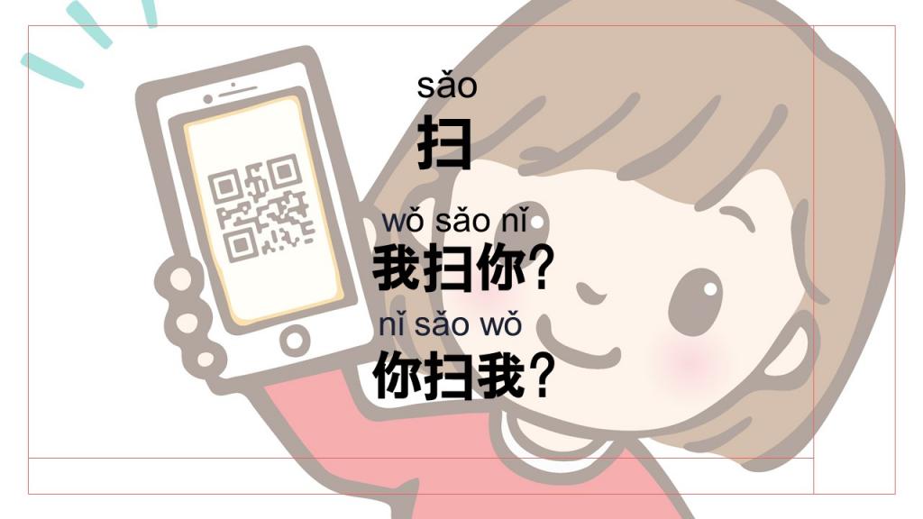 はい、QRコードでの決済です。皆さん、“スキャンします”の中国語はご存知ですか?→ “扫”を使います。↓ ↓ ↓
