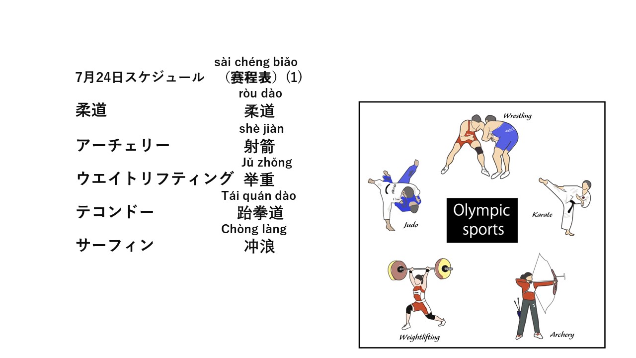 オリンピックの試合項目の中国語の言い方を勉強続けましょう!。