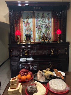 我已经一年没有见过老公的父母了。我们到了老公家以后,我送给了他们我在日本买的礼物。 有巧克力, 饼干, 仙贝, 栗子晚饭的羊羹, 什么的。爸爸给我到了一杯茶。 我们一边喝茶一边聊天儿。晚饭时,妈妈准备了火锅的材料有猪肉,香菇,高丽菜,三种饺子,虾,豆腐, 什么的。汤的味道很浓很好吃。我们还吃了妈妈做的红豆汤圆。 这个红豆不太甜, 所以我很喜欢。吃了晚饭以后, 我们看着电视聊天儿。晚上十一点以后,我们在神棚前面祭了神,上了香,供了纸钱。然后祭了祖先, 给祖先上了香。之后,我们在窗前祭了门神。我们给门神也上了香。老公告诉我门神是保护家人的神。最后我们把供奉过的纸钱拿到外面烧了。这是为了家人的幸福和家人的繁茂。