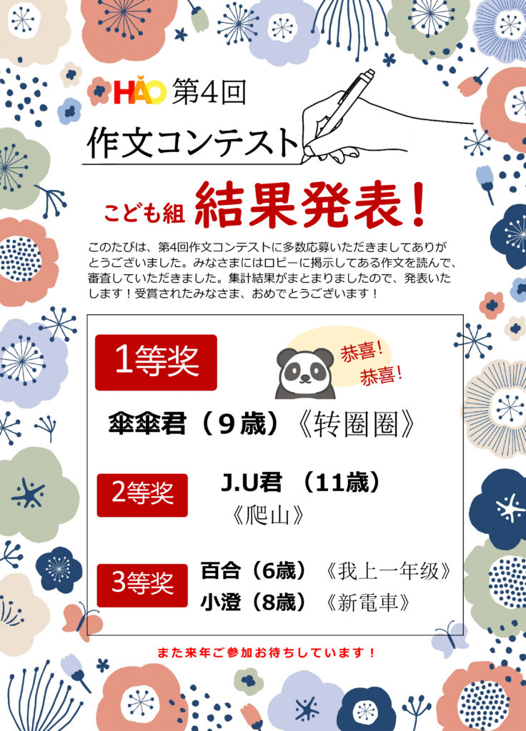 今回は、第四回作文コンテストこども組の受賞者を紹介したいと思います!