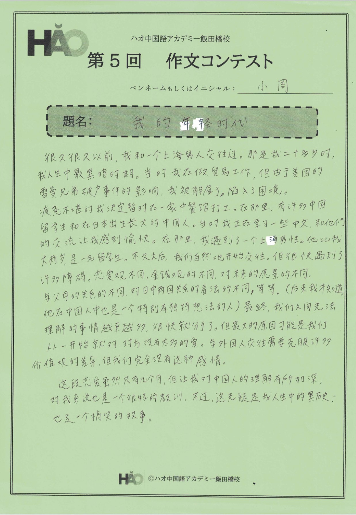 次は三等賞を受賞した小澄同学(台湾華語)!