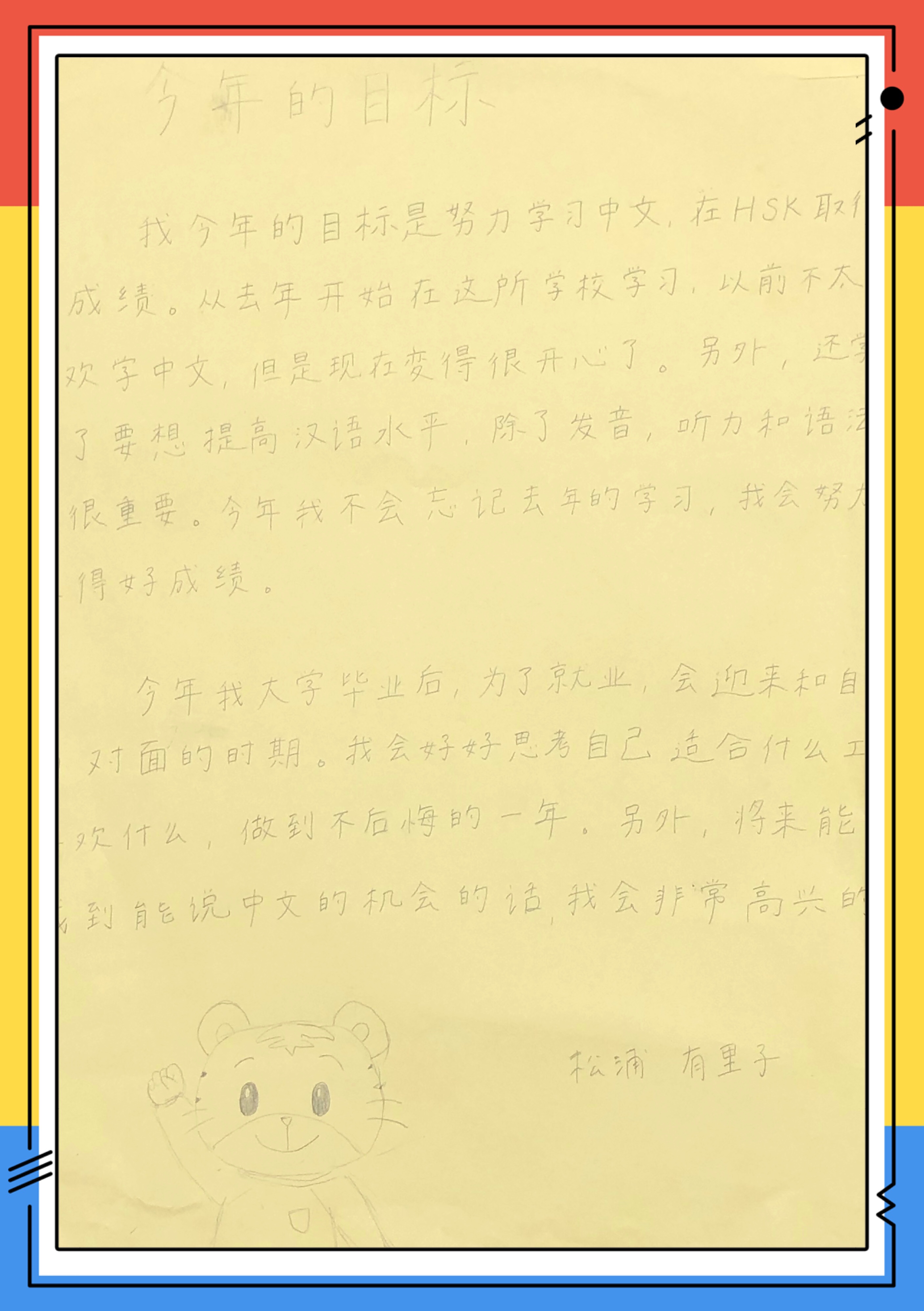 第十八篇も友達と一緒に勉強しに来る大学生松浦さんの作文です。松浦さんは学校に通い始めてから中国語の学習が楽しくなったとの事でした。可愛いイラスト、谢谢!