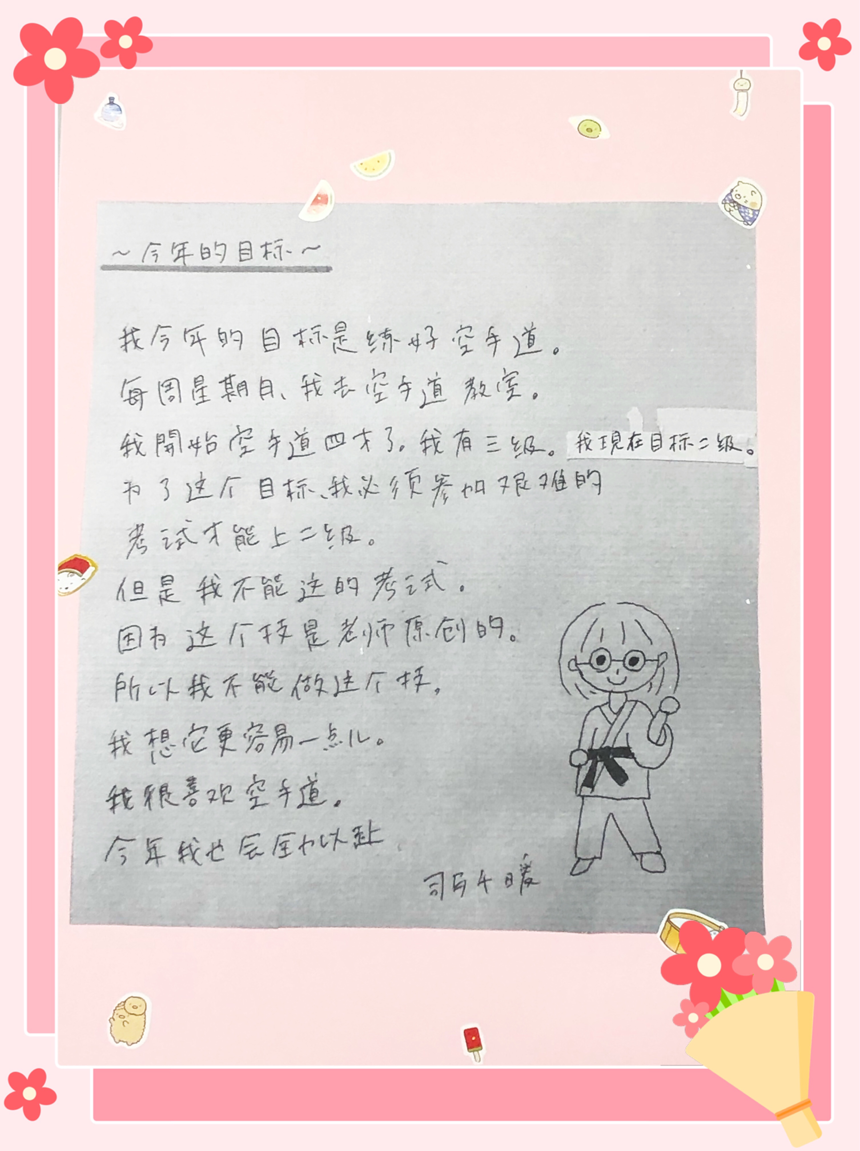 第二十篇は去年飯田橋校の作文コンテストで一等賞を獲得した現在中学校一年生になった千暖ちゃんの作文です。八歳から飯田橋校で頑張って来ました。今は自分でこんなに立派に中国語で作文書けるまで成長しました。