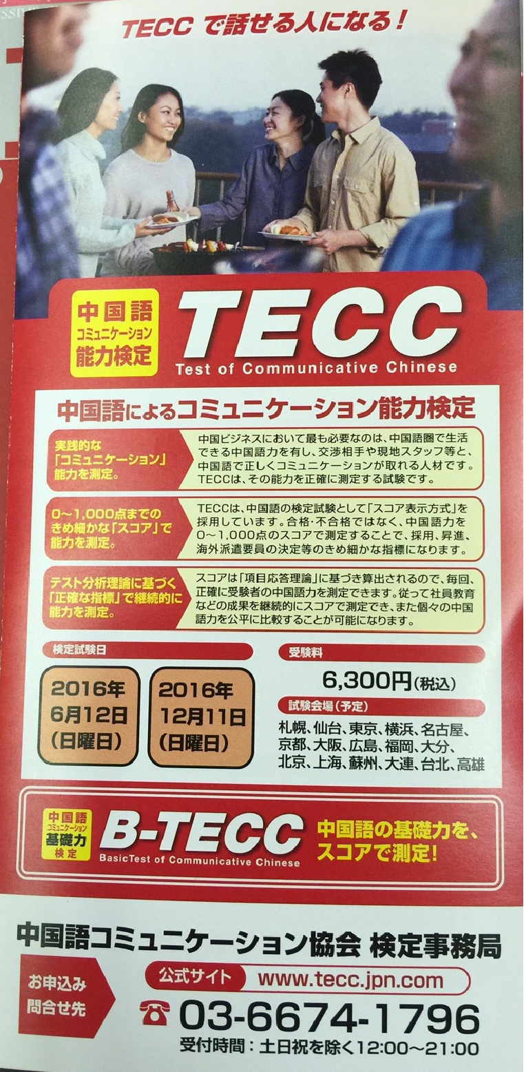 TECCとは英語でTest of Communicative Chineseで