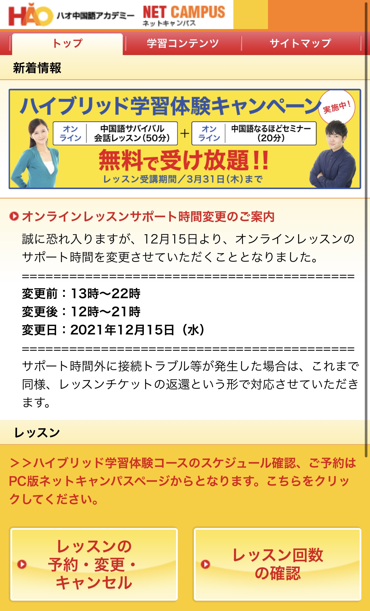 ・受講申込書記載のIDならびにパスワードでネットキャンパスへログインし、「ハイブリッド学習キャンペーン」のバナーをクリックすると、本レッスンやセミナーのご予約ができます。
