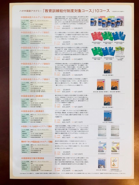 そして、ハオには現在この『教育訓練給付制度』(※)対象となるコースがなんと10コースも!!!