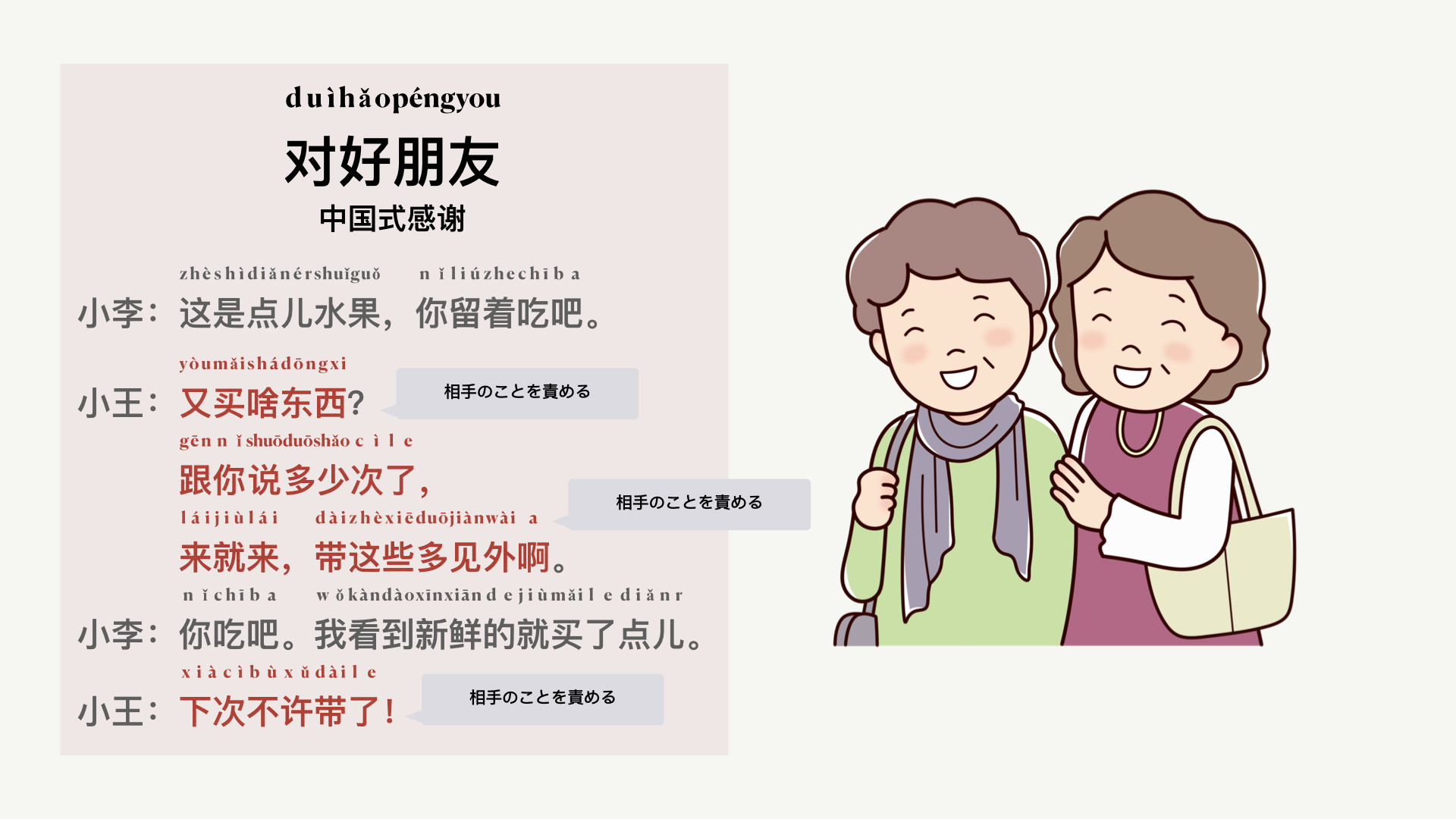 実際、中国語母語話者の会話を聞いてみると、【谢谢】はそこまで頻繁に現れず、むしろ別の言い回しをよく使っていることがわかります。
