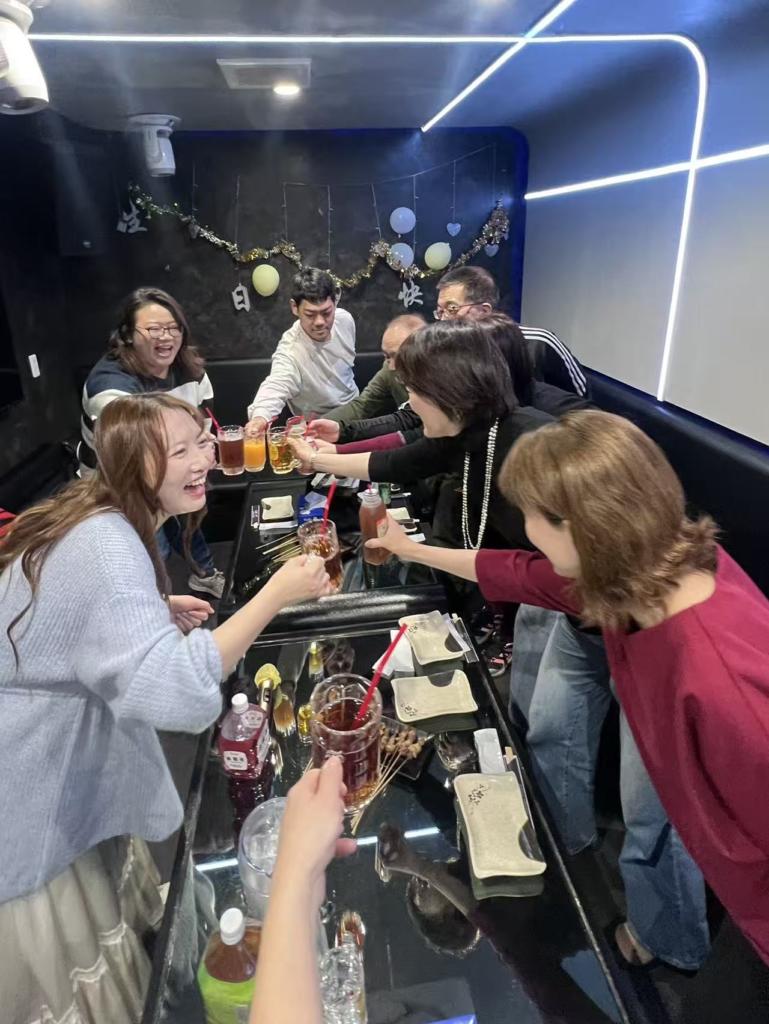 コロナ禍前に開催していた交流会ほどの規模ではありませんが、スタッフや講師と楽しくか語らいながら中華料理をいただき、さらに中国語カラオケが楽しめる場をご用意いたしました。