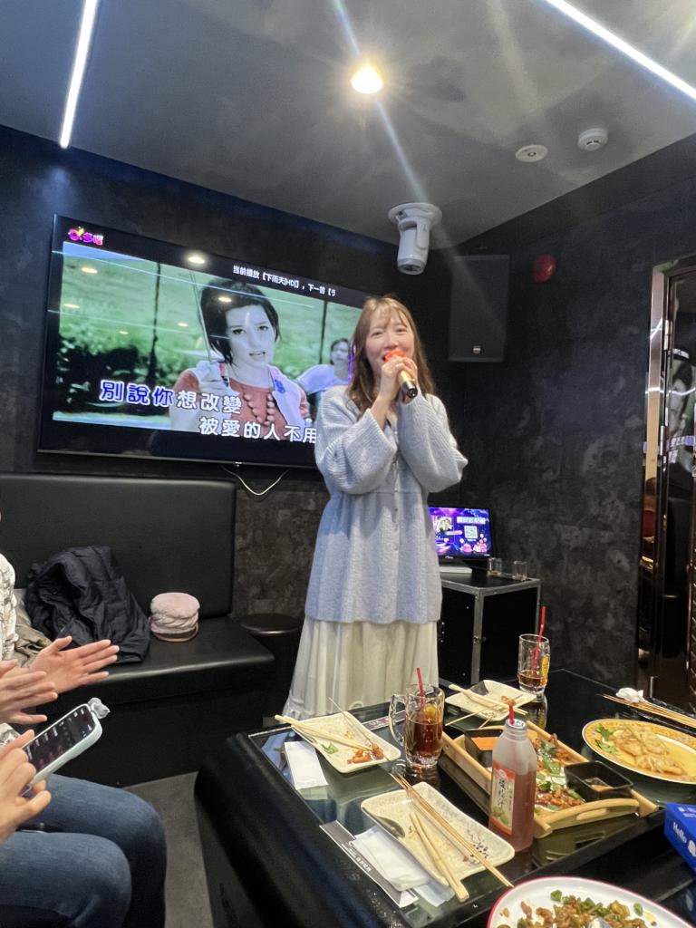 歌が苦手だという魏老師やI先生がおしゃべりで盛り上がっている間、私たちスタッフも数曲歌わせていただきましたよ。