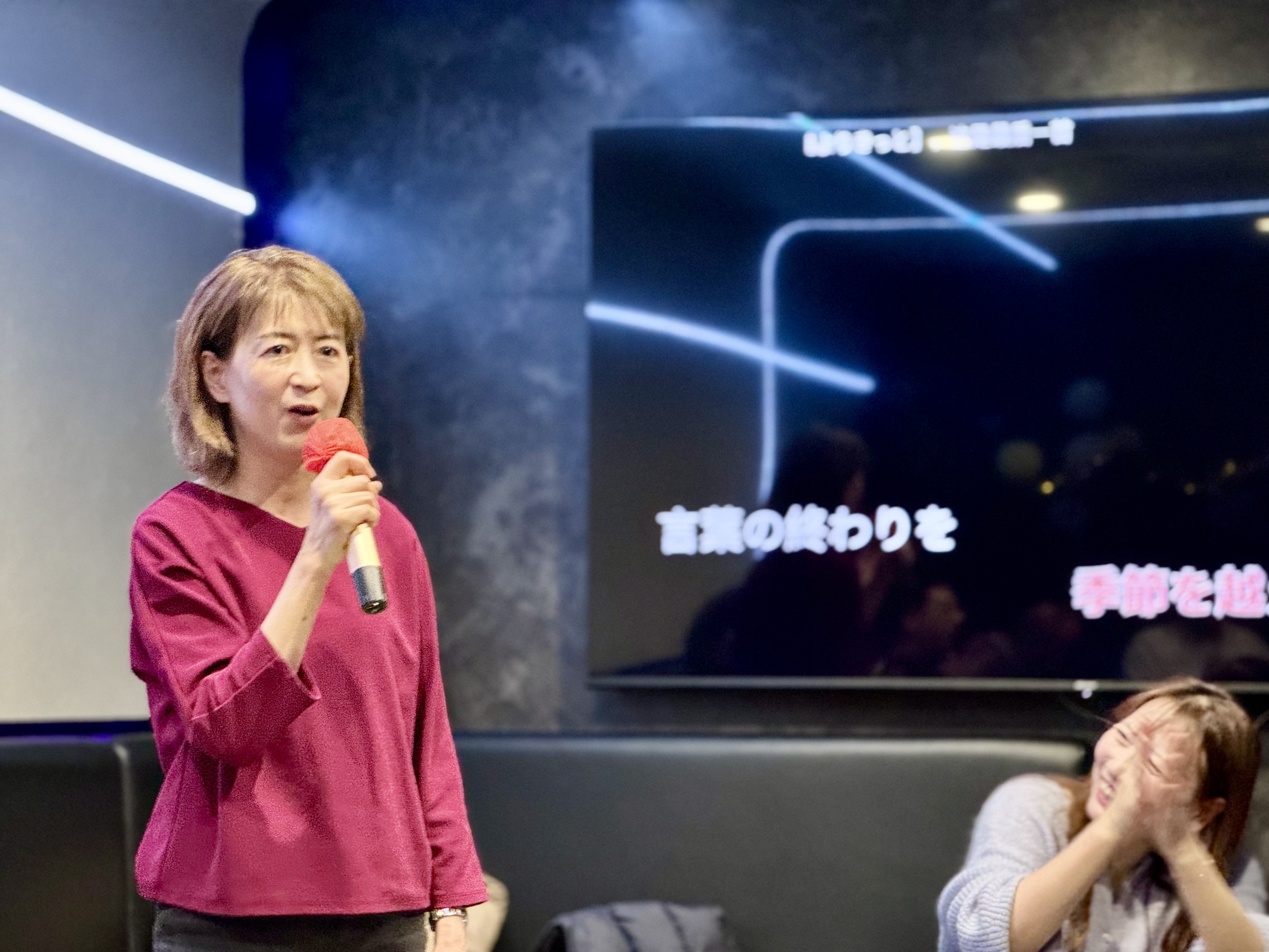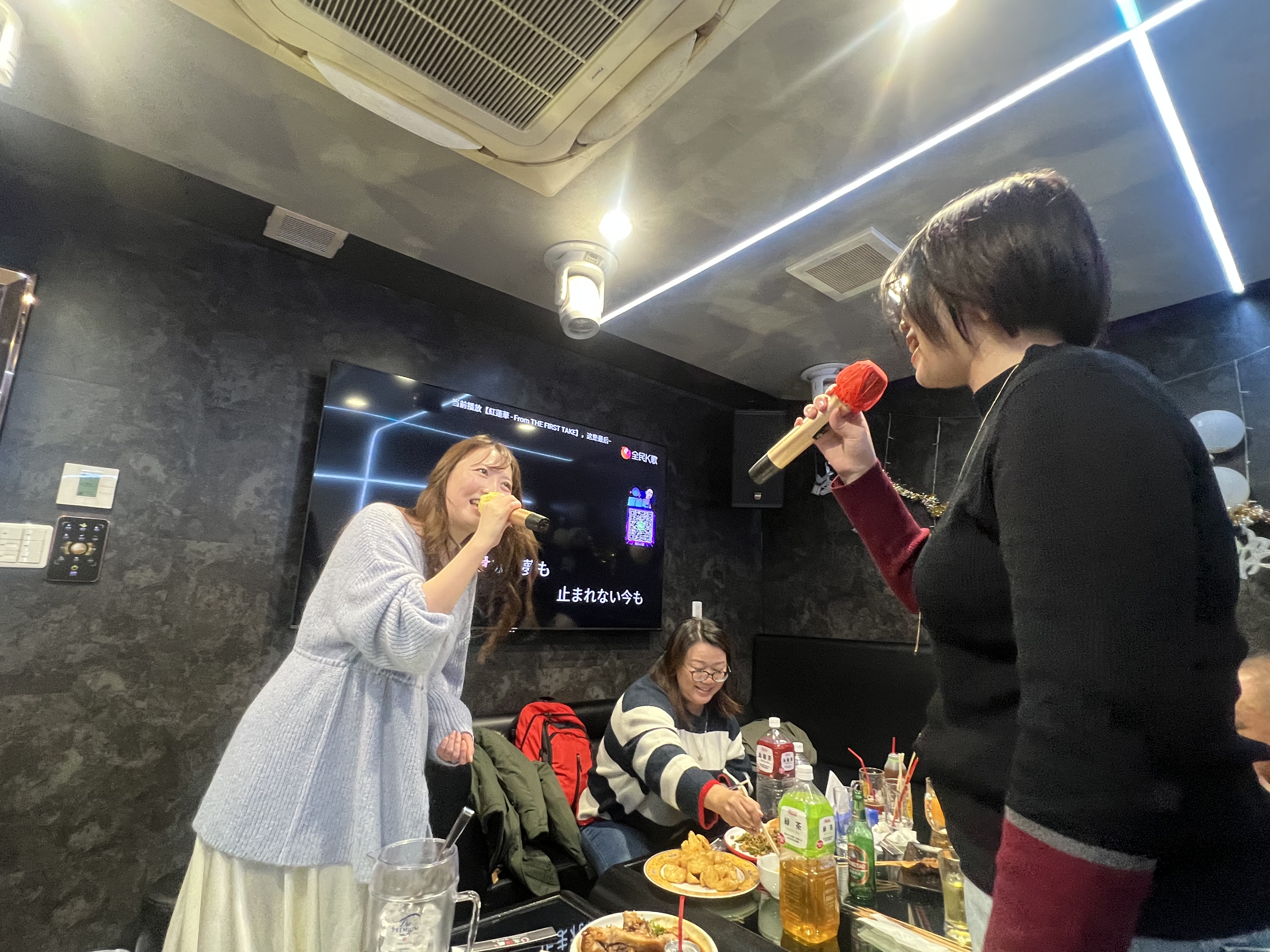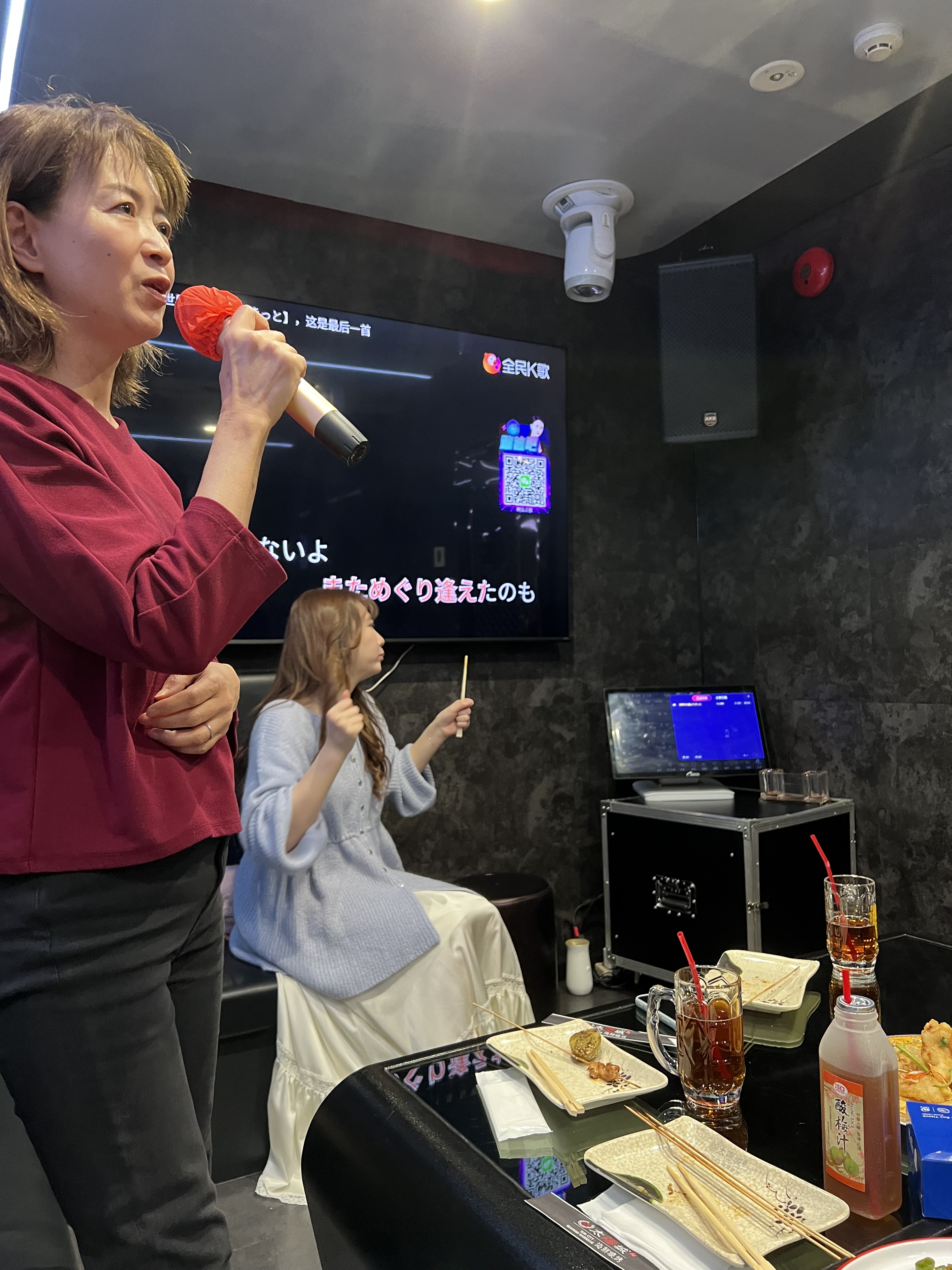 歌が苦手だという魏老師やI先生がおしゃべりで盛り上がっている間、私たちスタッフも数曲歌わせていただきましたよ。