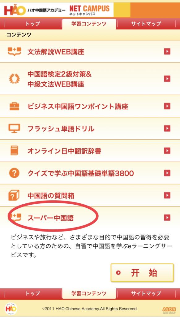 まずは、学習コンテンツの中から【スーパー中国語】を選択!