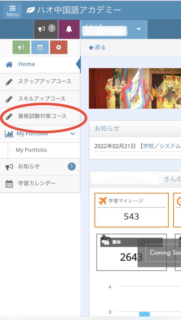 次に、左上のメニューボタンから【資格対策コース】を選択してください。