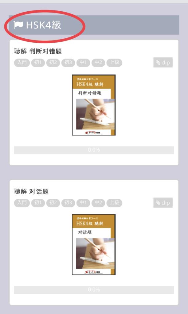 「読解力」「聴解力」「作文」を中心に構成された【HSK4級対策】が新たに追加されています。