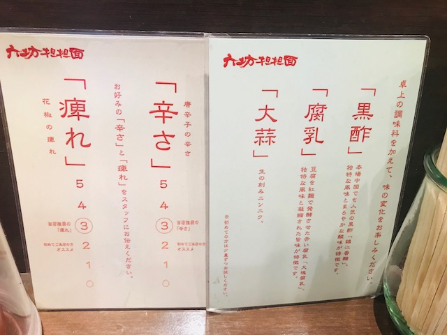 入り口をはいるとすぐ左側に食券機があります、汁あり、汁なし、いずれも「日式」「成都式」から選べますよ。
