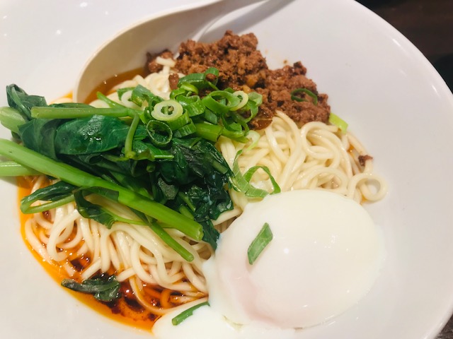 ちなみに、今回は何にしたかというと「成都式の汁なし温泉たまご付」でございます。ワクワクしながらいざ実食!!!