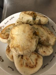 チーを餡にしてフライパンで焼く餅です).餡は普通の餡と同じ作り方です、野菜のかわ