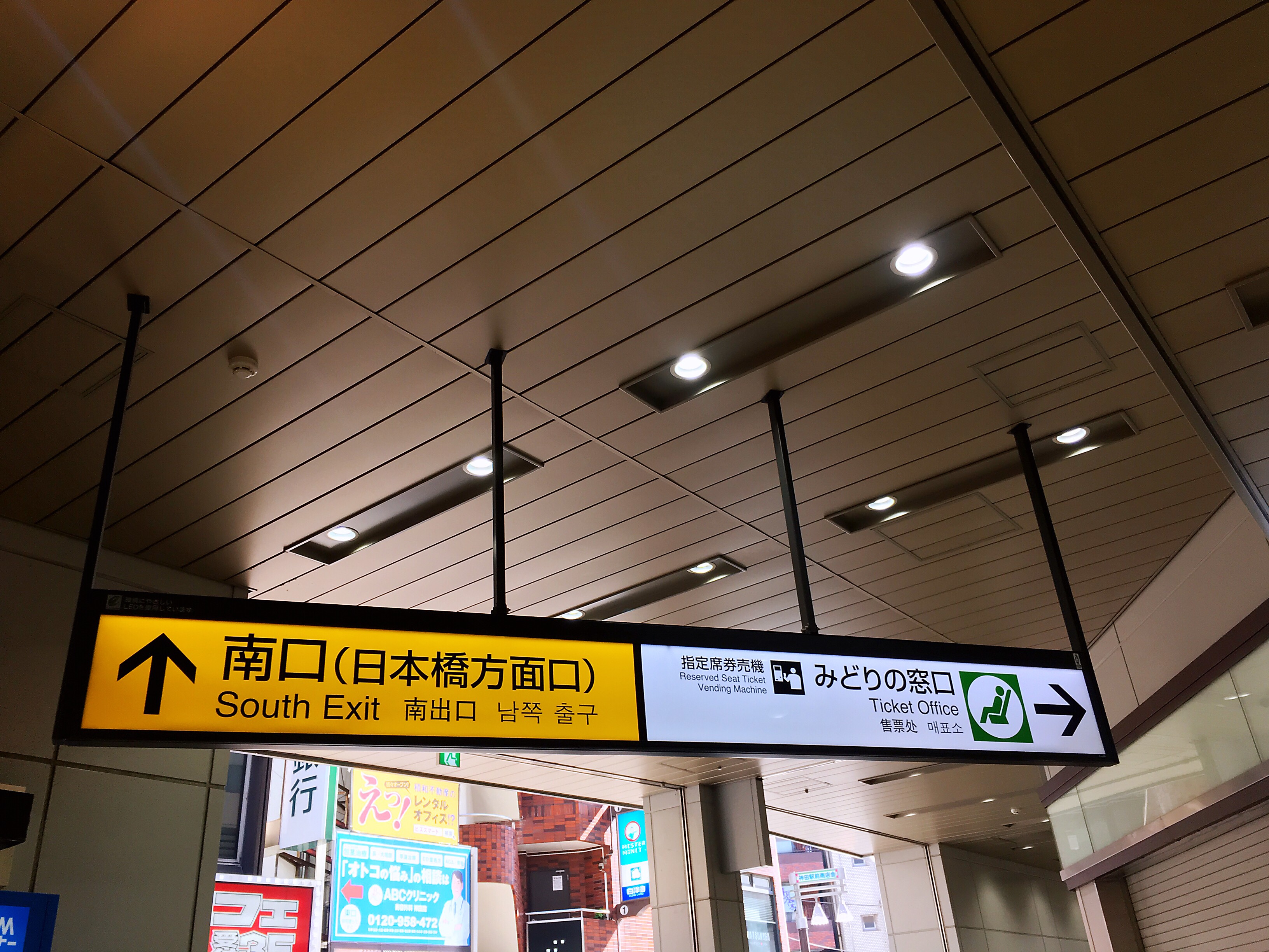 南口改札口を出ましたら、南口(日本橋方面)へ進みください。