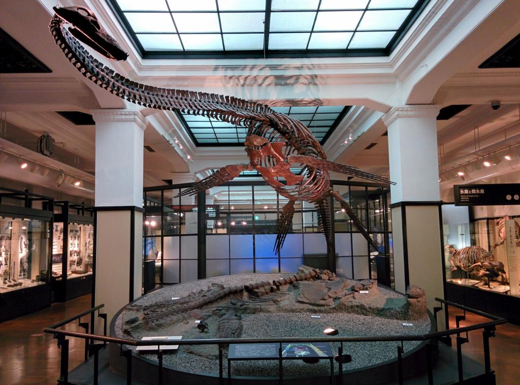 写真の中のフタバスズキサウルスの化石は、以前曹先生は国立科学博物館で撮ったです。
