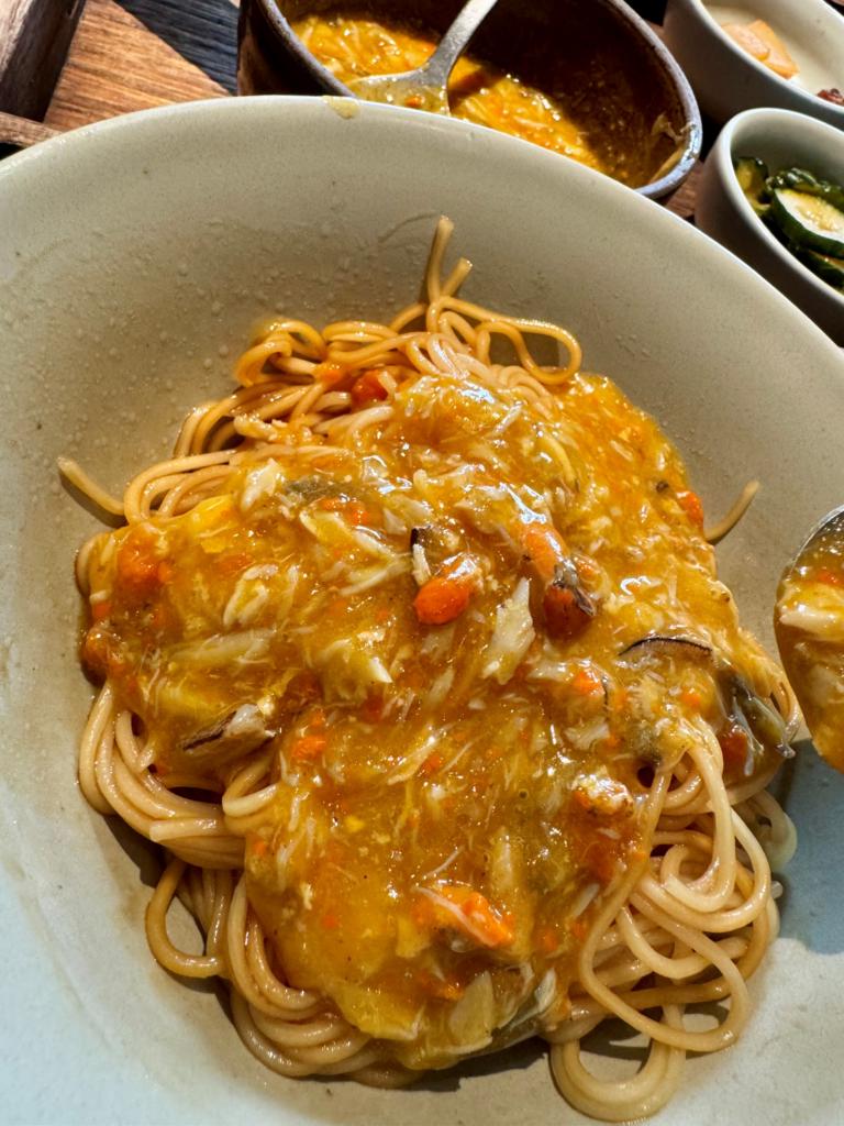 面条很劲道,和蟹黄一起吃超香。