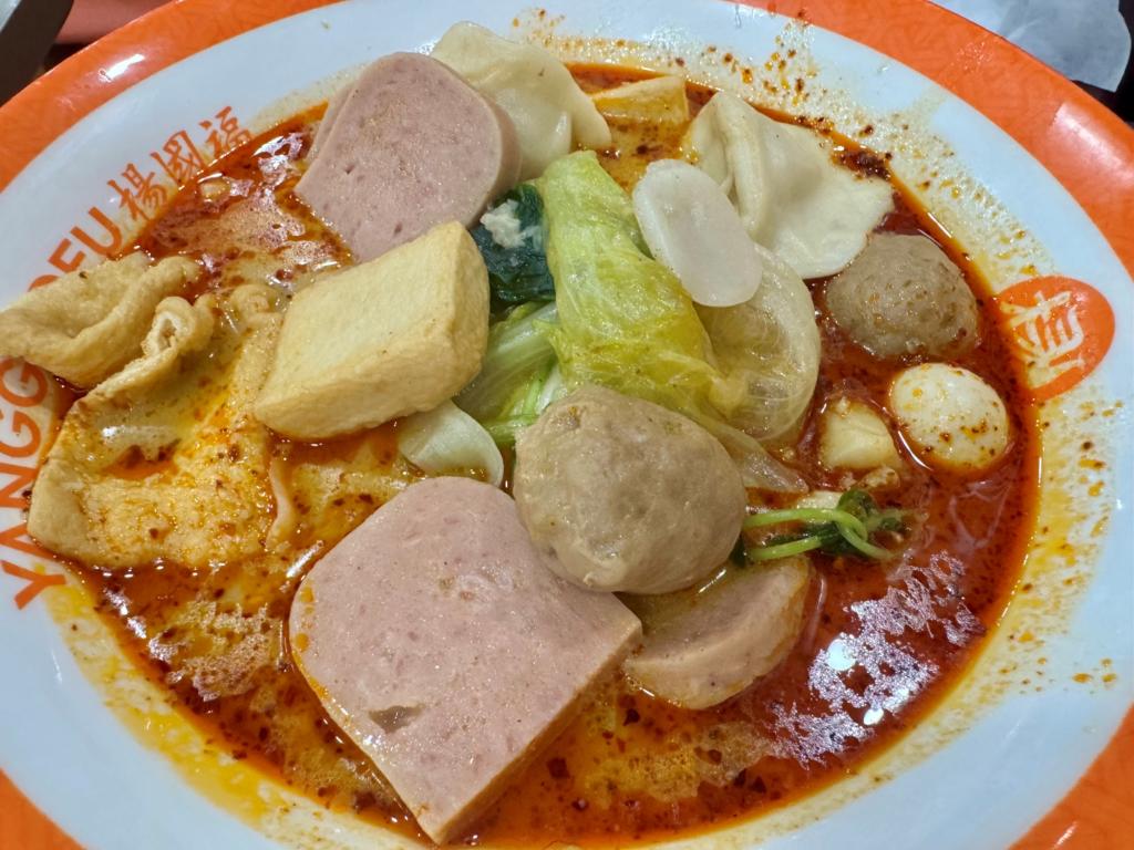 具材は自分で自由に選ぶことができ、野菜、豆腐製品、海鮮、肉、団子などを辛いスープで煮込んだあと、ラー油、花椒、香菜、にんにくなどで味付けします。辛くて香り高く、クセになる美味しさが特徴です。地域によっては辛くない清湯(チンタン)ベースのものもあります。