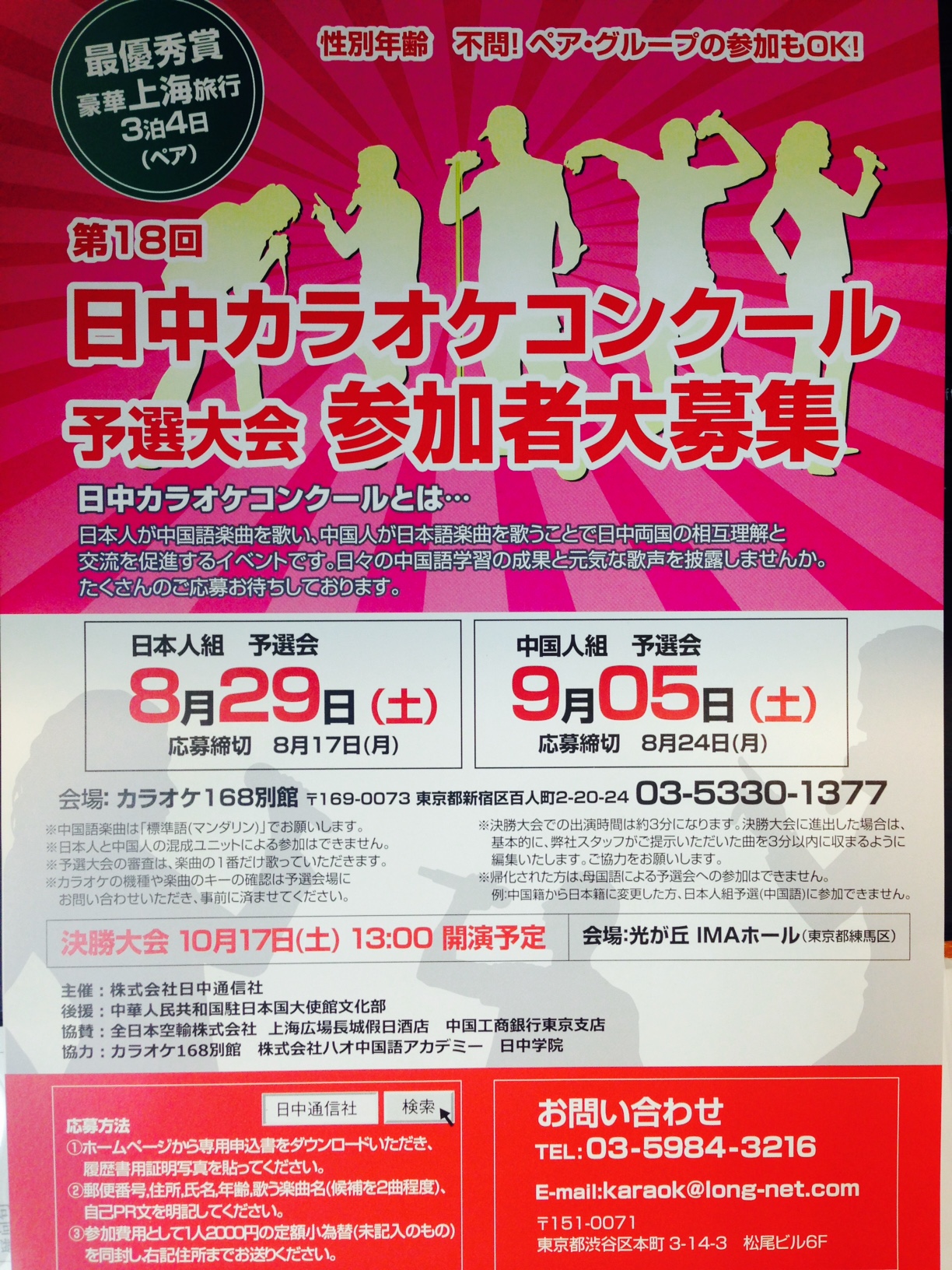 日中通信社主催でカラオケコンクールを開催するようで