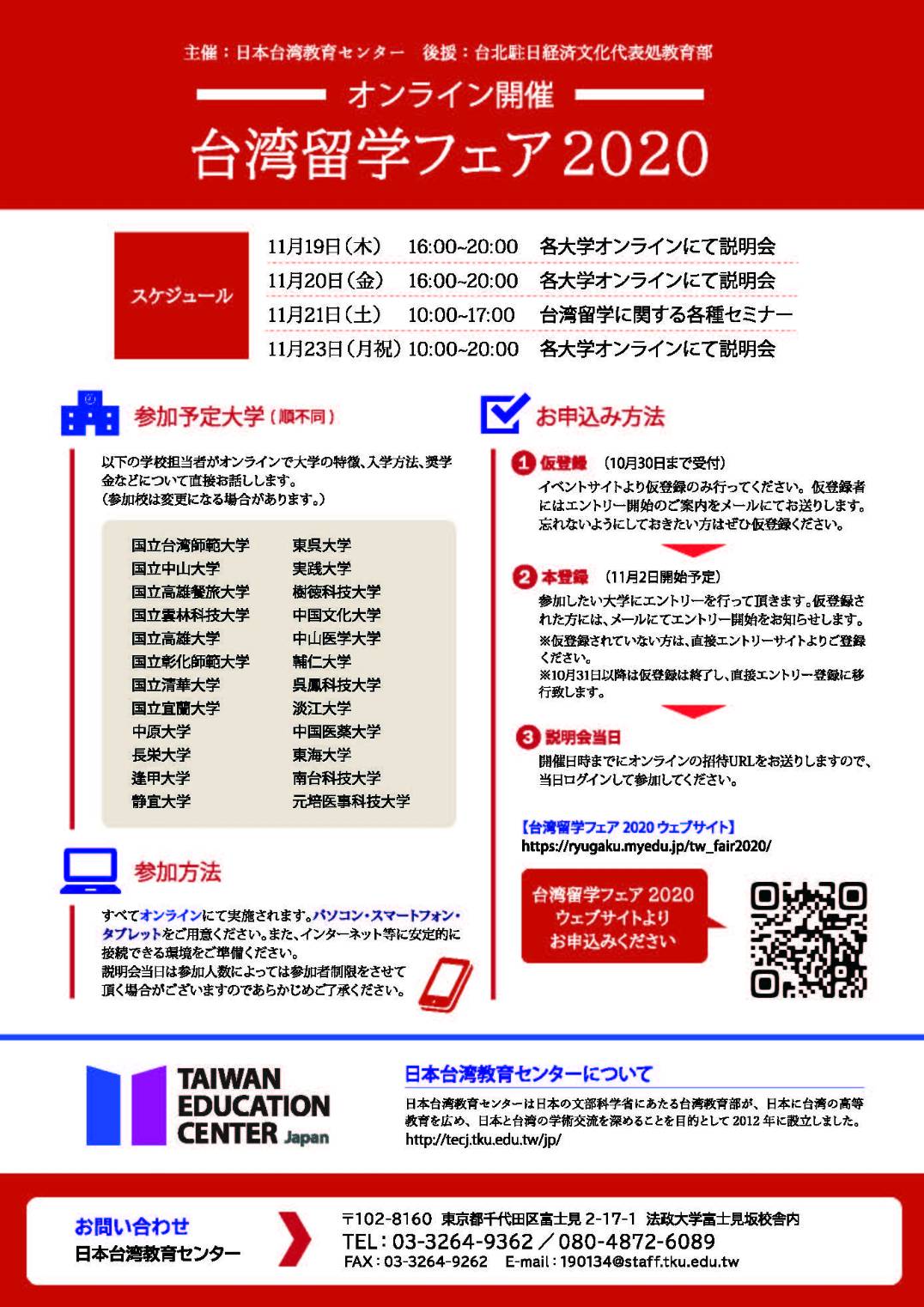 【オンライン開催2020 台湾留学フェアのお知らせ】