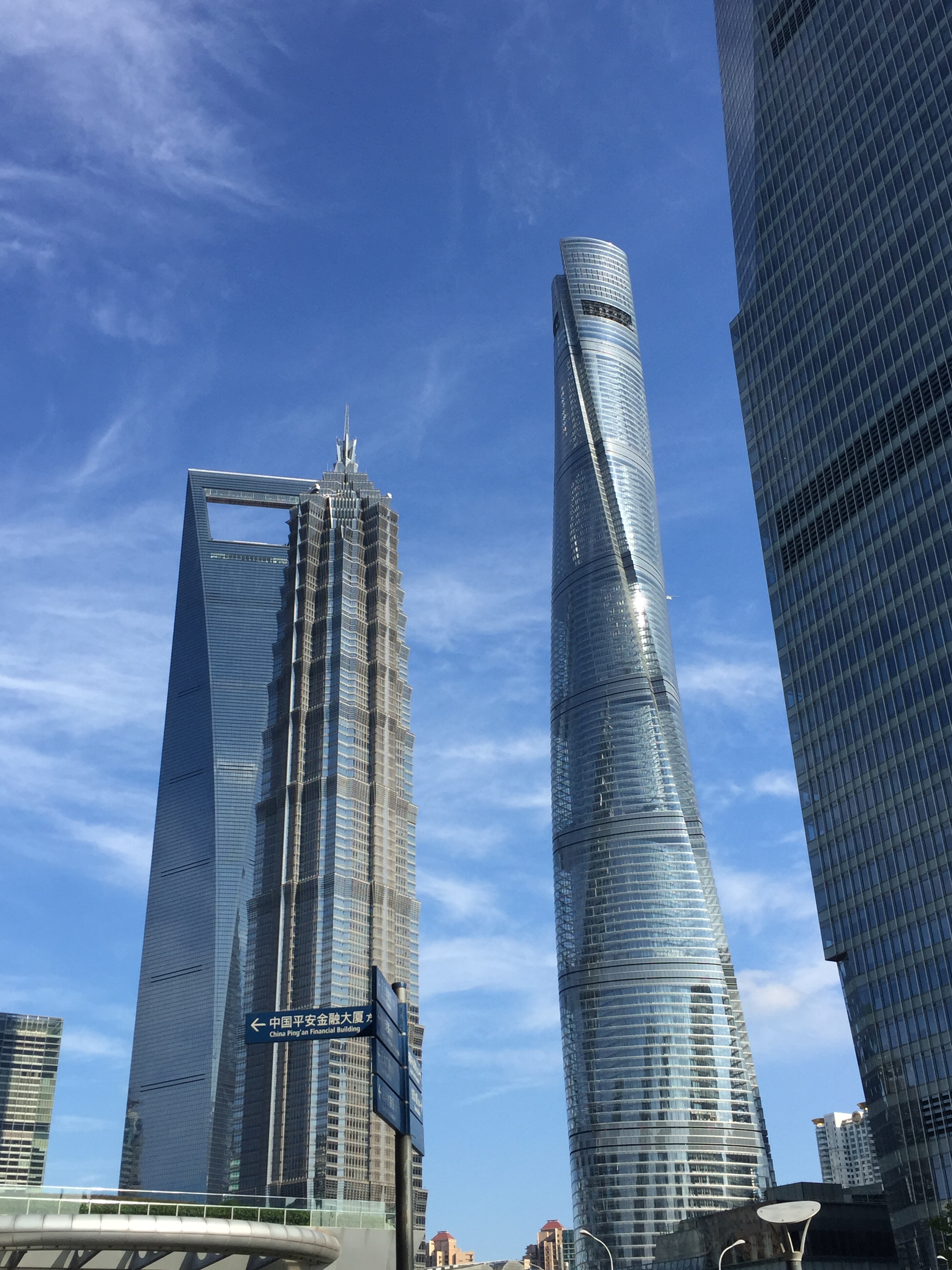 到达饭馆以后我去浦东看「东方明珠塔」,「金茂大厦」等等。