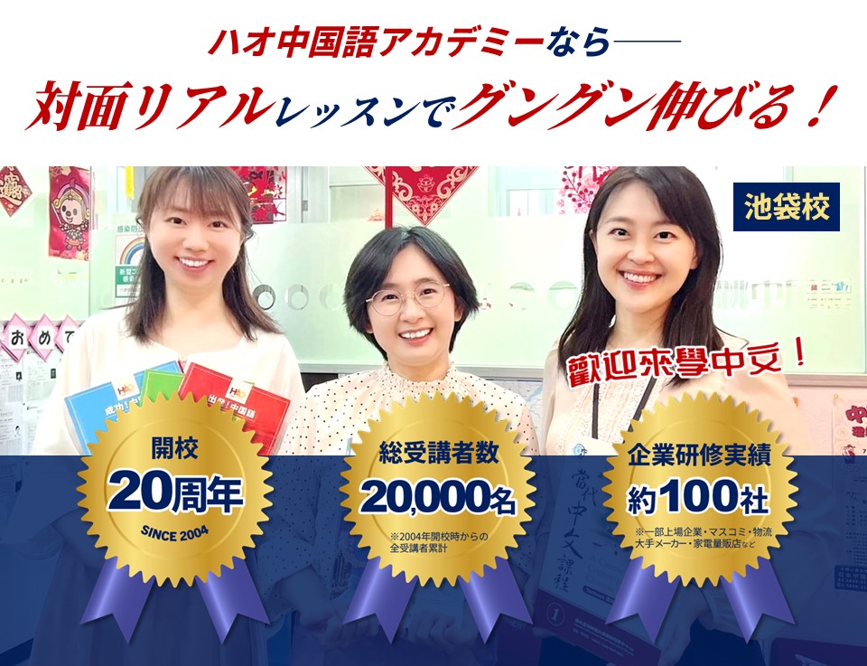 欢迎来到HAO池袋校!2025年8月の開校からお陰様で【20周年】。池袋を含め全国主要都市に12教室を展開中。海外提携校もあるため急な中国赴任も安心です!