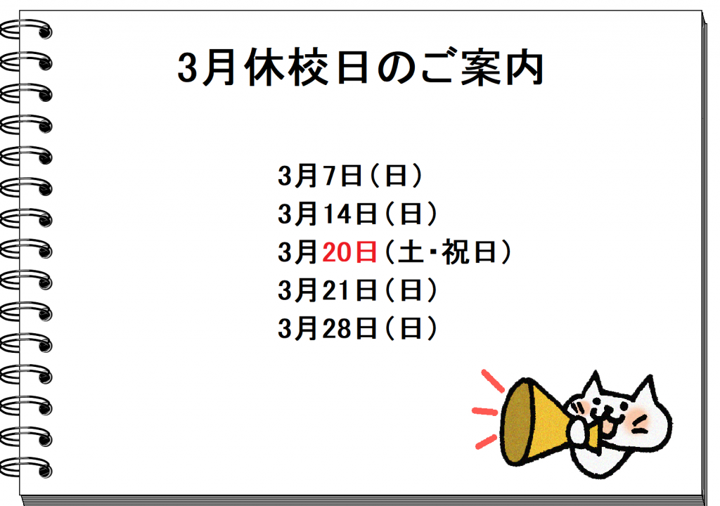 日曜日・祝日 休校