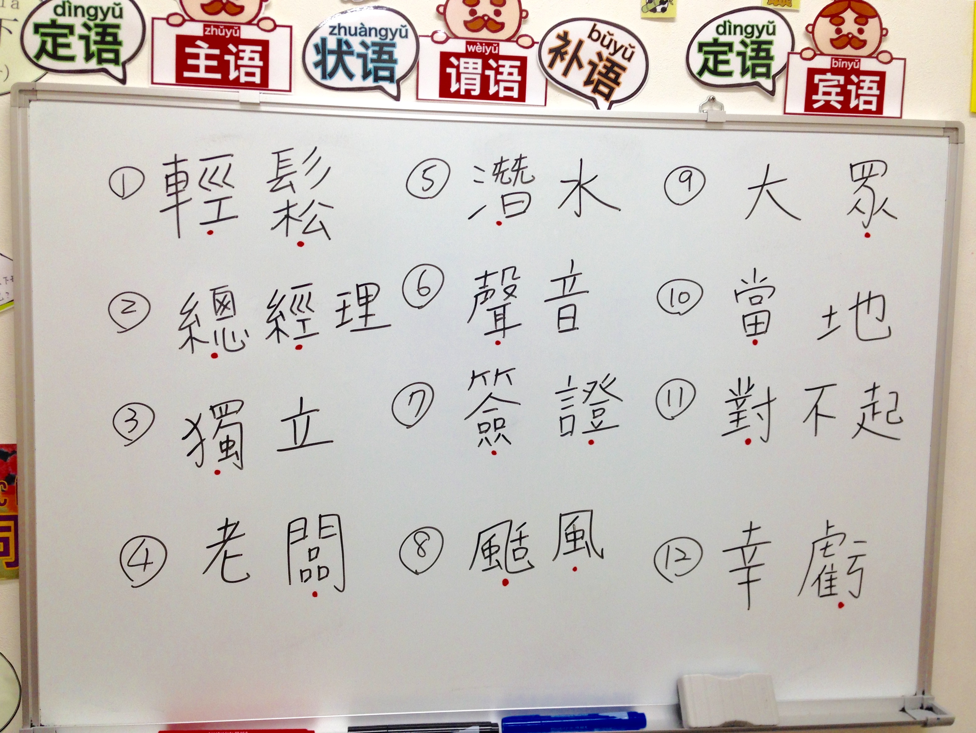 ホワイトボードに書かれた繁体字、読んでみましょう!