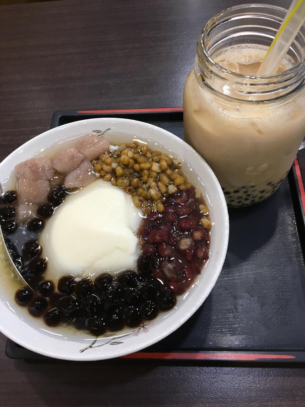 入住以前我逛了逛饭店的附近。在台湾第一顿吃的东西是葱油饼。等办理完入住手续后,我又逛了街。然后吃了豆花,喝了珍珠奶茶。这些都非常好吃。