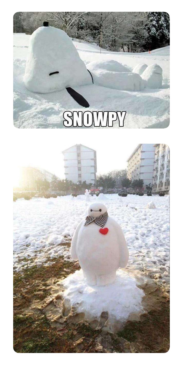 大家堆过雪人吗?你们见过用雪堆成的各种各样的卡通人物吗?