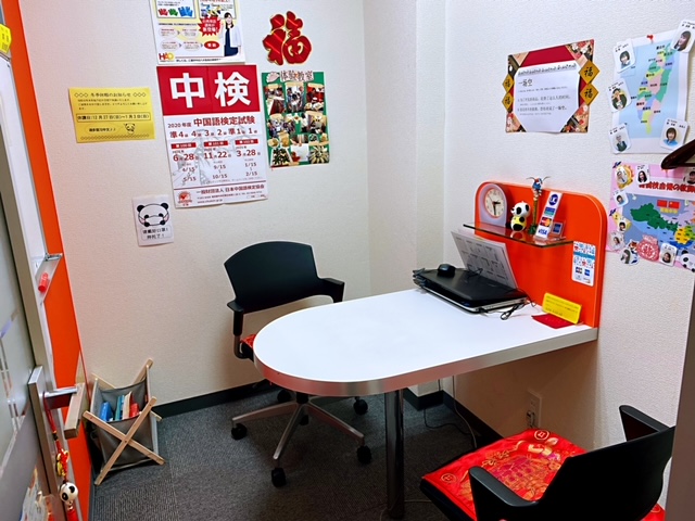 ⇒教室に入っていただき、「你好!(こんにちは)」とスタッフが笑顔でお迎えいたします。