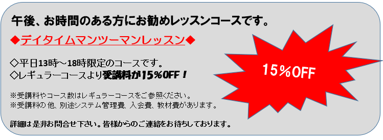 本日は平日の午後、お時間のある方にお勧めレッスンコースの案内です♪