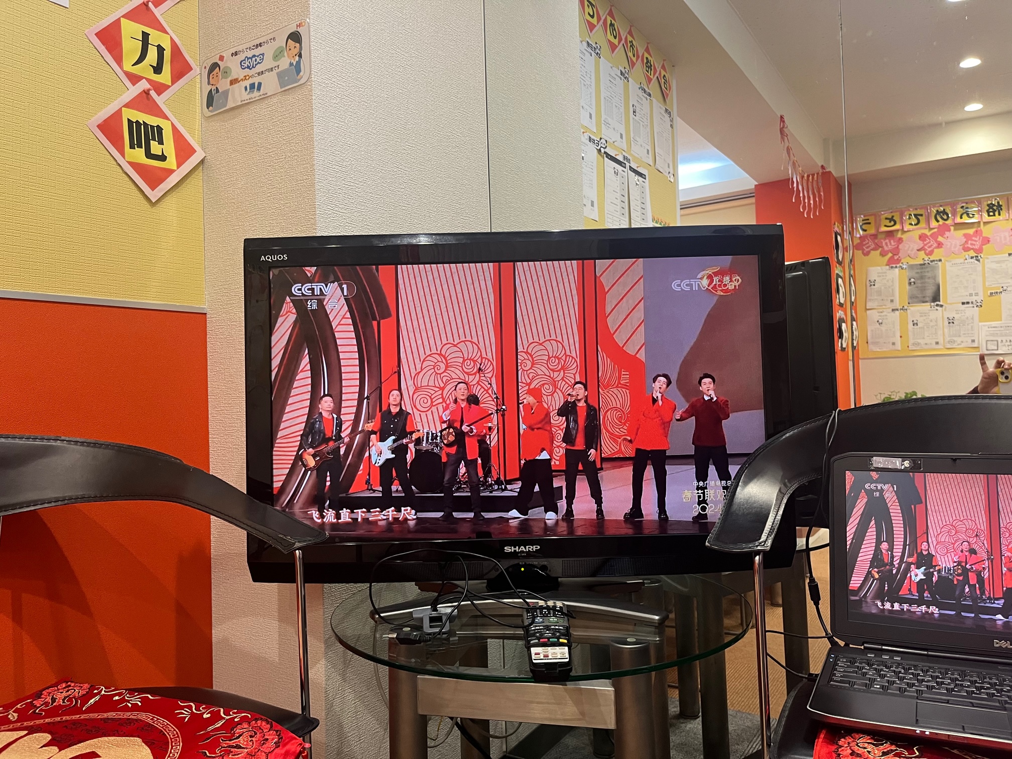 大きなテレビモニターで「2024年CCTV春节联欢晚会」を再放送中です。
