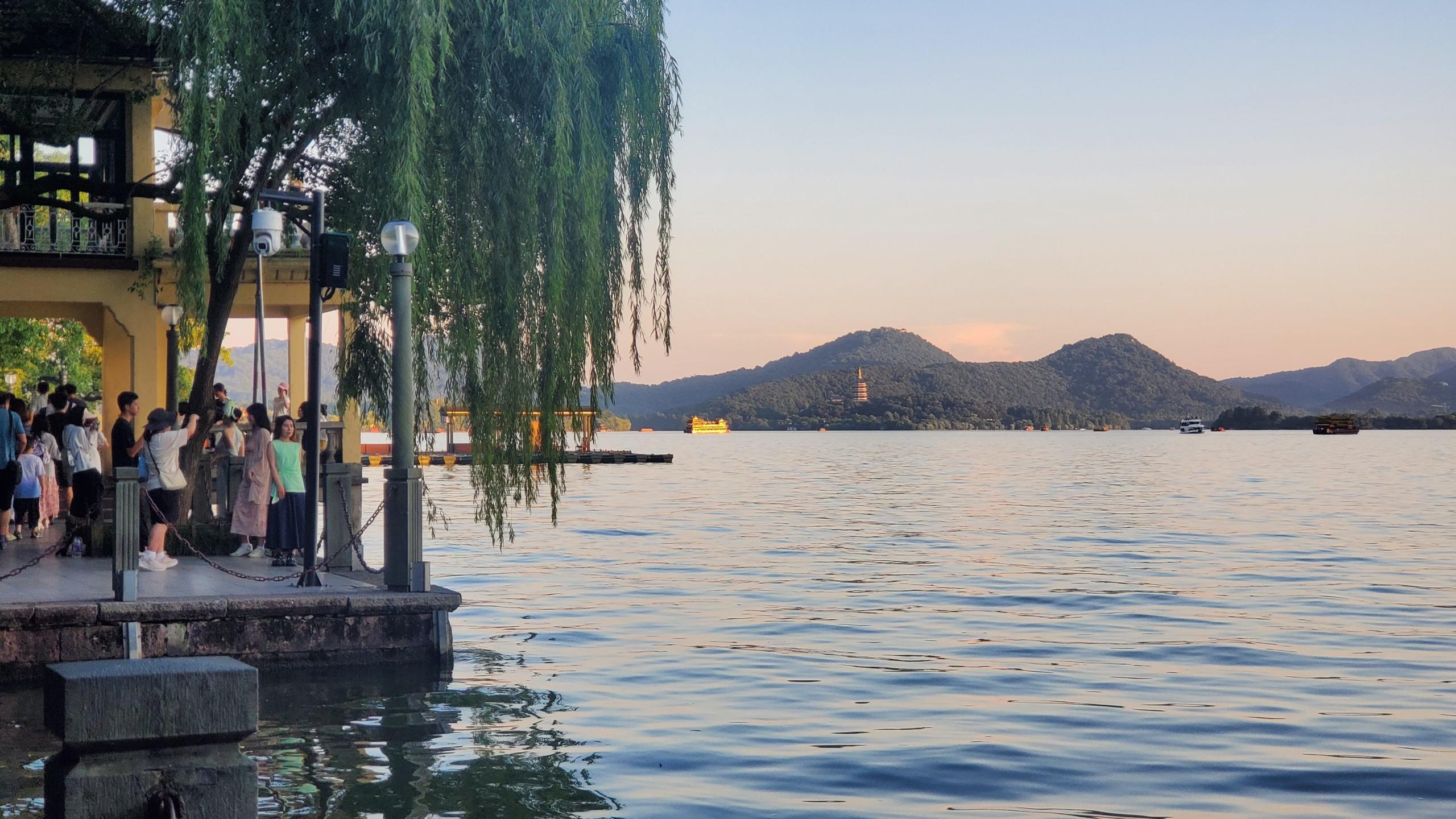 1、雷峰夕照:雷峰塔にも登りましたが、やはり湖畔から見る夕暮れがきれいでした。いつでもたくさんの人が湖畔で楽しんでいました。