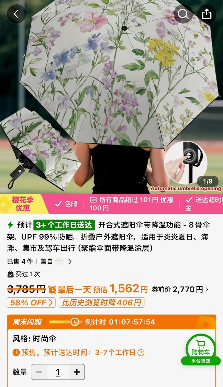 日よけ傘も素敵、熱を下げる、新素材がコーティングされているようです~