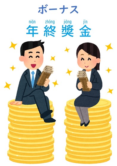 大家都喜歡的「ボーナス」,台灣華語是「年終獎金」。
