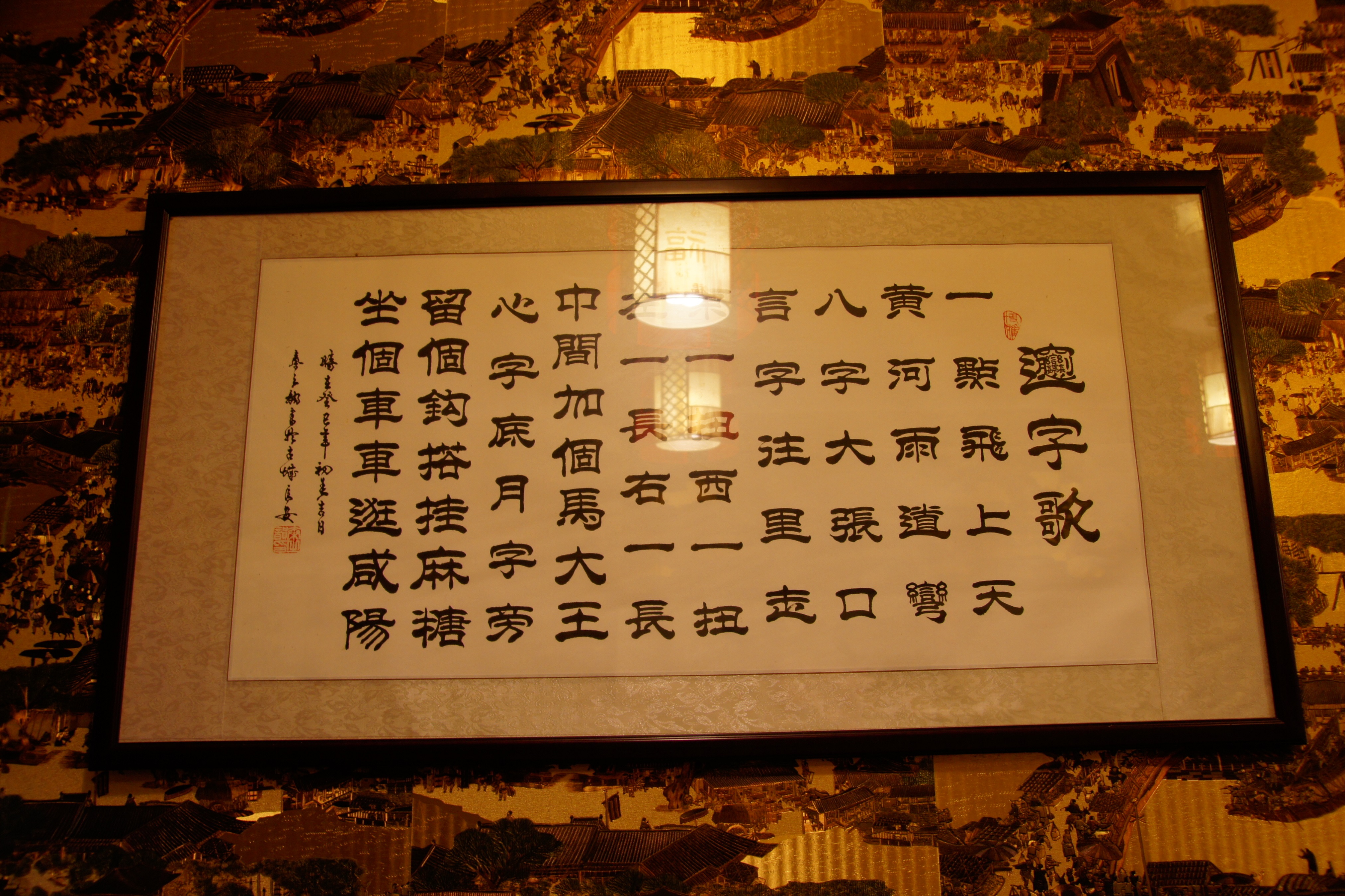 除了去名胜古迹以外,还吃了很多西安的特色菜,比如说,西安饺子、羊肉泡馍和 (biangbiang)面。 Biangbiang面的字又难读又难写,但味道非常好吃。 菜馆的老板说,为了写那个字,有 (Biang)字的歌,很有意思。
